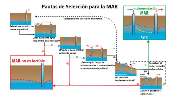 Para que sea posible la selección de un método de MAR se necesitan evaluar ciertos criterios principales, su rentabilidad y la identificación de beneficios adicionales, además debe ser analizado mediante modelación para conocer los posibles riesgos de infraestructura, riesgos de peligro y contaminación frente al clima futuro.